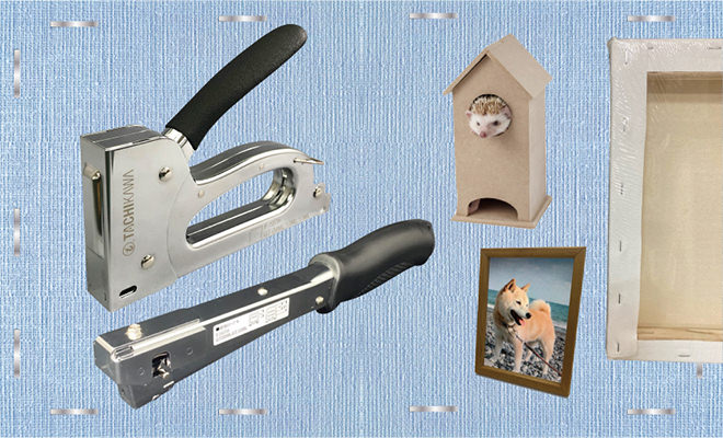 チラシ貼り・家具の布張り・フォトフレーム・ペットのお家・ラック・キャンバス固定・木製プランターなど多用途かつ気軽に使用できる手動ツール「ガンタッカ」「ハンマータッカ」を取り揃えています。