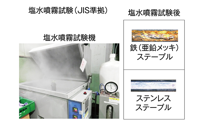 一般的なステープルは鉄に亜鉛メッキを施していますが、雨また湿気の多い場所ではやがて錆びます。