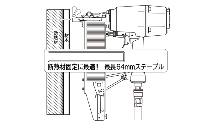 ステープルの用途は木材同士の固定だけではありません。断熱材を挟んだり、ステンレスをクリンチしたり、多様な用途に使用できます。