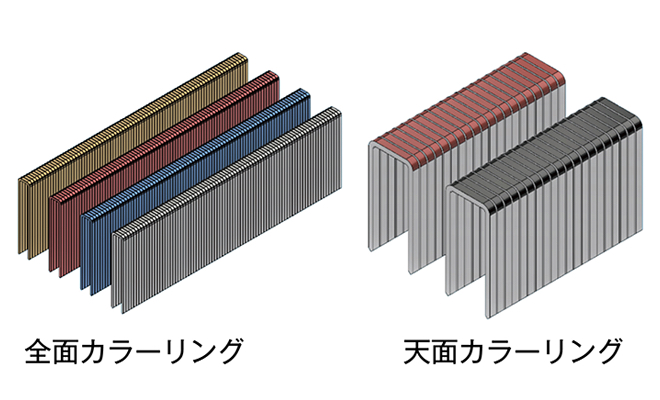 木材に合わせて目立たない色、逆に打ち込みを確認しやすい目立つ色など、多様な着色が可能です。