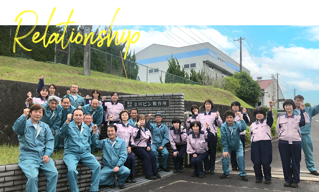 2020年に新体制となった株式会社立川ピン製作所では、「人と人のつながり」を大切にする企業として、ニッポンのものづくりの現場に貢献していくことを宣言しています。機械加工のイメージが強いステープルですが、弊社では要所要所に人の目と手を入れることはもちろん、心を込めて製品を製造してきました。 お取引先様はもちろん、弊社製品をお使いになる職人さんなど、すべてのステークスホルダーのみなさまとのつながりを大切にしたいと常に願っています。物事の簡略化や効率化が進む現代だからこそ、私たちは「人と人のつながり」を最も大切なものと考えています。