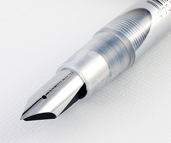 ■特徴/ 従来のつけペン先(Gペン、スクールペン)にインクカートリッジを内蔵して、インクを付ける手間を省いた、新しいつけペンがこの「新ペン先」です。また、ペン先の書き味を活かしつつ、いつでも、どこでも使える利便性も兼ね備えた新しいペン先です。耐水性、遮光性、速乾性に優れたインクを使用しており、カートリッジ1本当りで、およそ1,000m書けます。